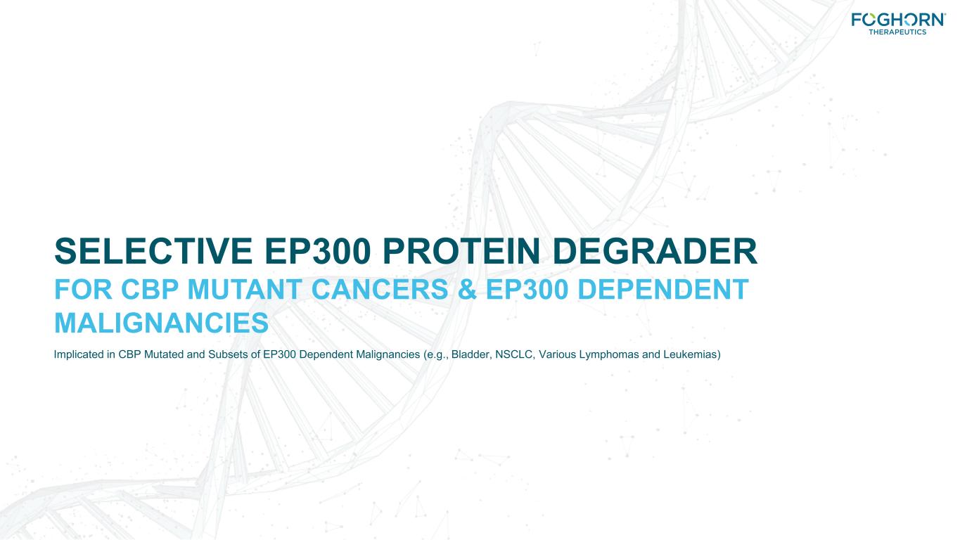 SELECTIVE EP300 PROTEIN DEGRADER FOR CBP MUTANT CANCERS & EP300 DEPENDENT MALIGNANCIES Implicated in CBP Mutated and Subsets of EP300 Dependent Malignancies (e.g., Bladder, NSCLC, Various Lymphomas and Leukemias)