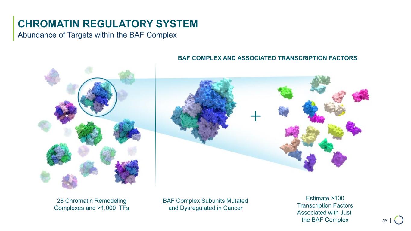 | BAF Complex Subunits Mutated and Dysregulated in Cancer 28 Chromatin Remodeling Complexes and >1,000 TFs CHROMATIN REGULATORY SYSTEM Estimate >100 Transcription Factors Associated with Just the BAF Complex BAF COMPLEX AND ASSOCIATED TRANSCRIPTION FACTORS Abundance of Targets within the BAF Complex 59