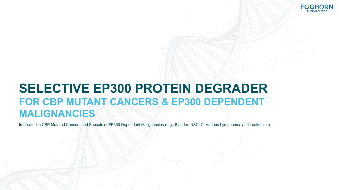 SELECTIVE EP300 PROTEIN DEGRADER FOR CBP MUTANT CANCERS & EP300 DEPENDENT MALIGNANCIES Implicated in CBP Mutated Cancers and Subsets of EP300 Dependent Malignancies (e.g., Bladder, NSCLC, Various Lymphomas and Leukemias)