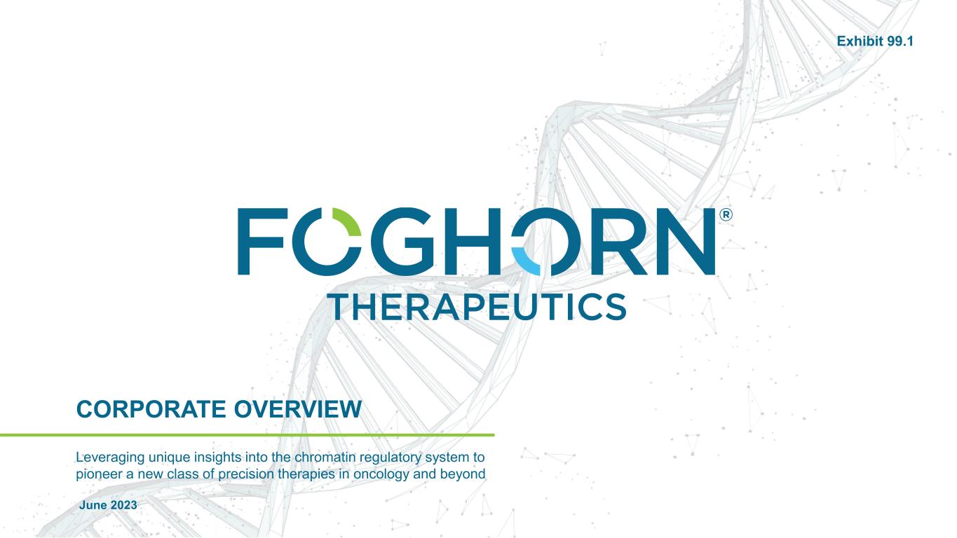 CORPORATE OVERVIEW June 2023 Leveraging unique insights into the chromatin regulatory system to pioneer a new class of precision therapies in oncology and beyond Exhibit 99.1