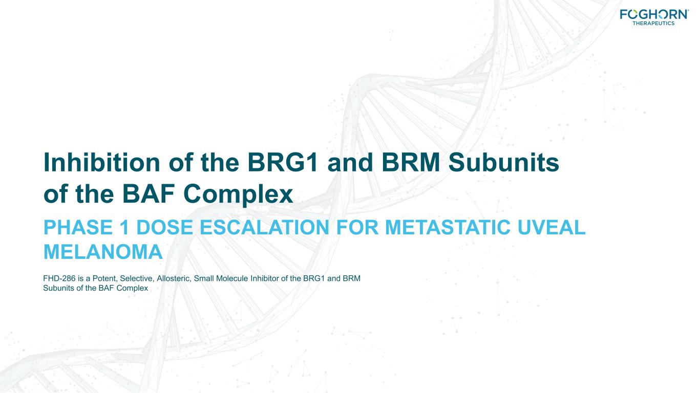Inhibition of the BRG1 and BRM Subunits of the BAF Complex FHD-286 is a Potent, Selective, Allosteric, Small Molecule Inhibitor of the BRG1 and BRM subunits of the BAF complex PHASE 1 DOSE ESCALATION FOR METASTATIC UVEAL MELANOMA FHD-286 is a Potent, Selective, Allosteric, Small Molecule Inhibitor of the BRG1 and BRM Subunits of the BAF Complex