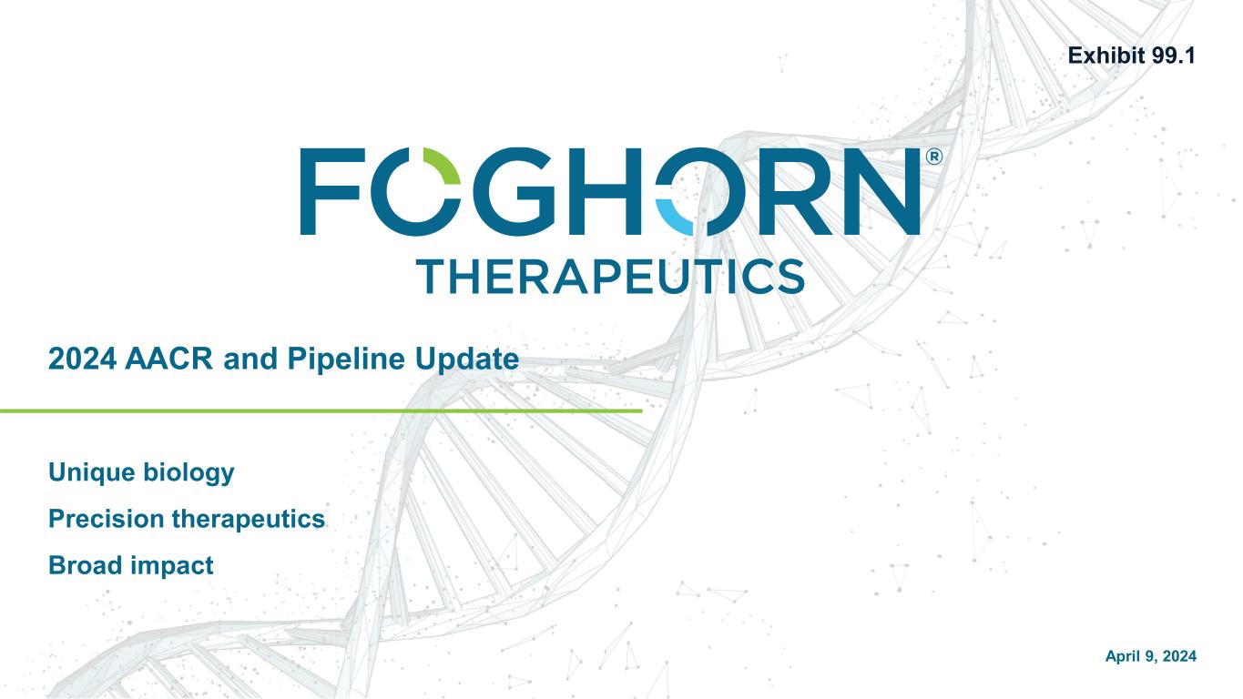 April 9, 2024 Unique biology Precision therapeutics Broad impact 2024 AACR and Pipeline Update Exhibit 99.1