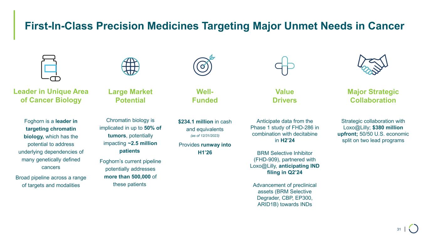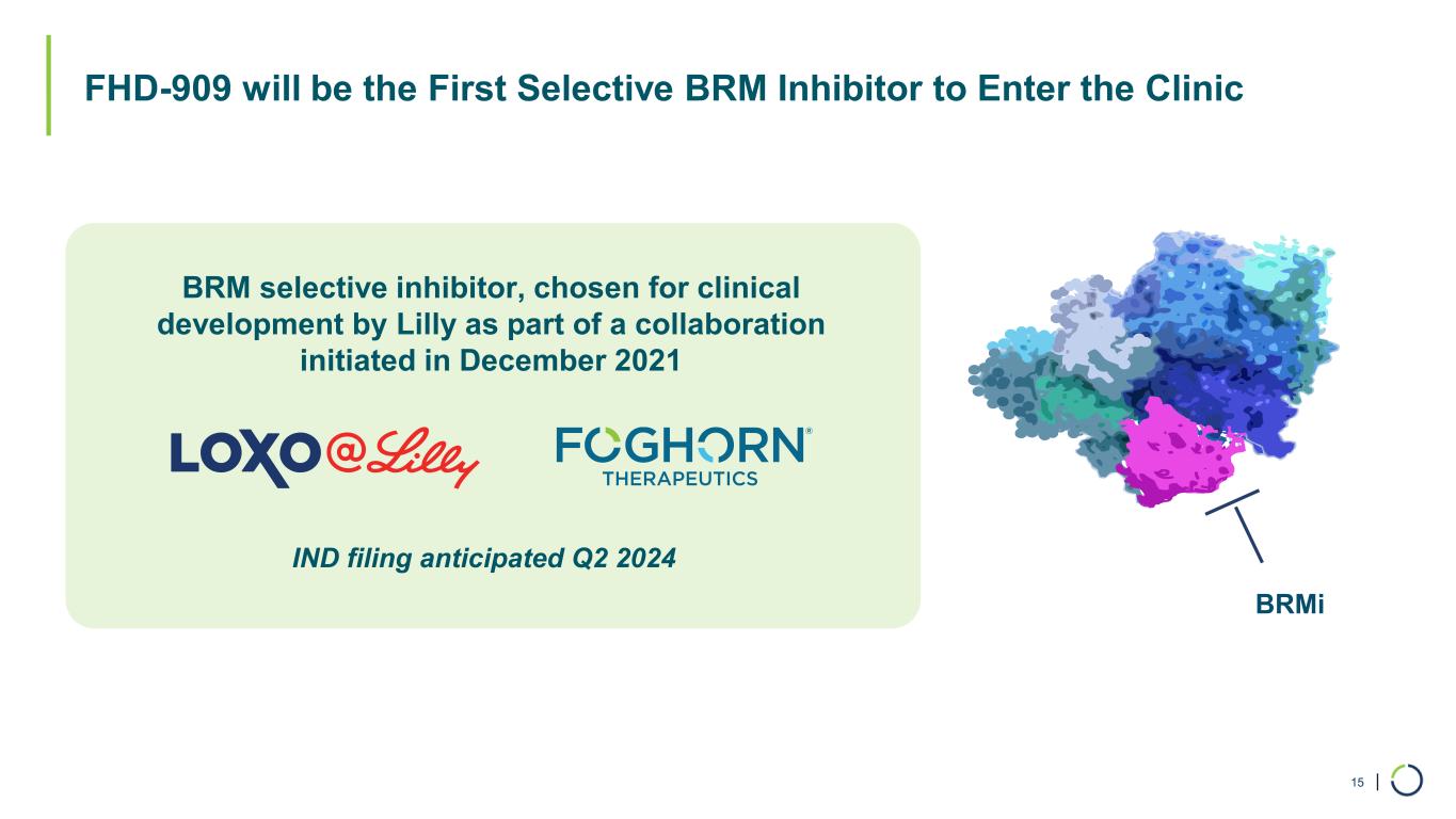 | FHD-909 will be the First Selective BRM Inhibitor to Enter the Clinic 15 BRM selective inhibitor, chosen for clinical development by Lilly as part of a collaboration initiated in December 2021 BRMi IND filing anticipated Q2 2024