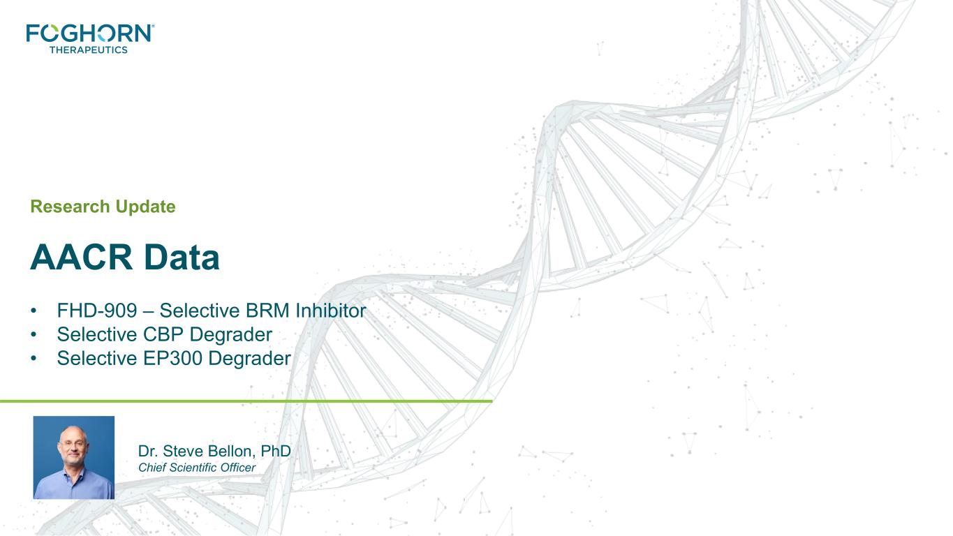 AACR Data • FHD-909 – Selective BRM Inhibitor • Selective CBP Degrader • Selective EP300 Degrader Research Update Dr. Steve Bellon, PhD Chief Scientific Officer