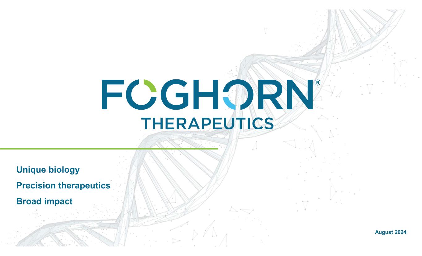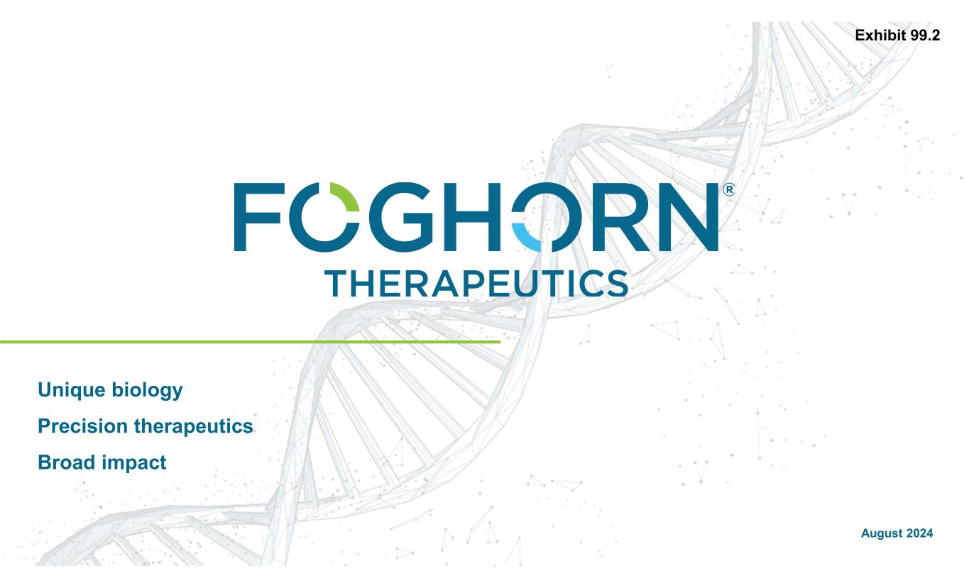 August 2024 Unique biology Precision therapeutics Broad impact Exhibit 99.2