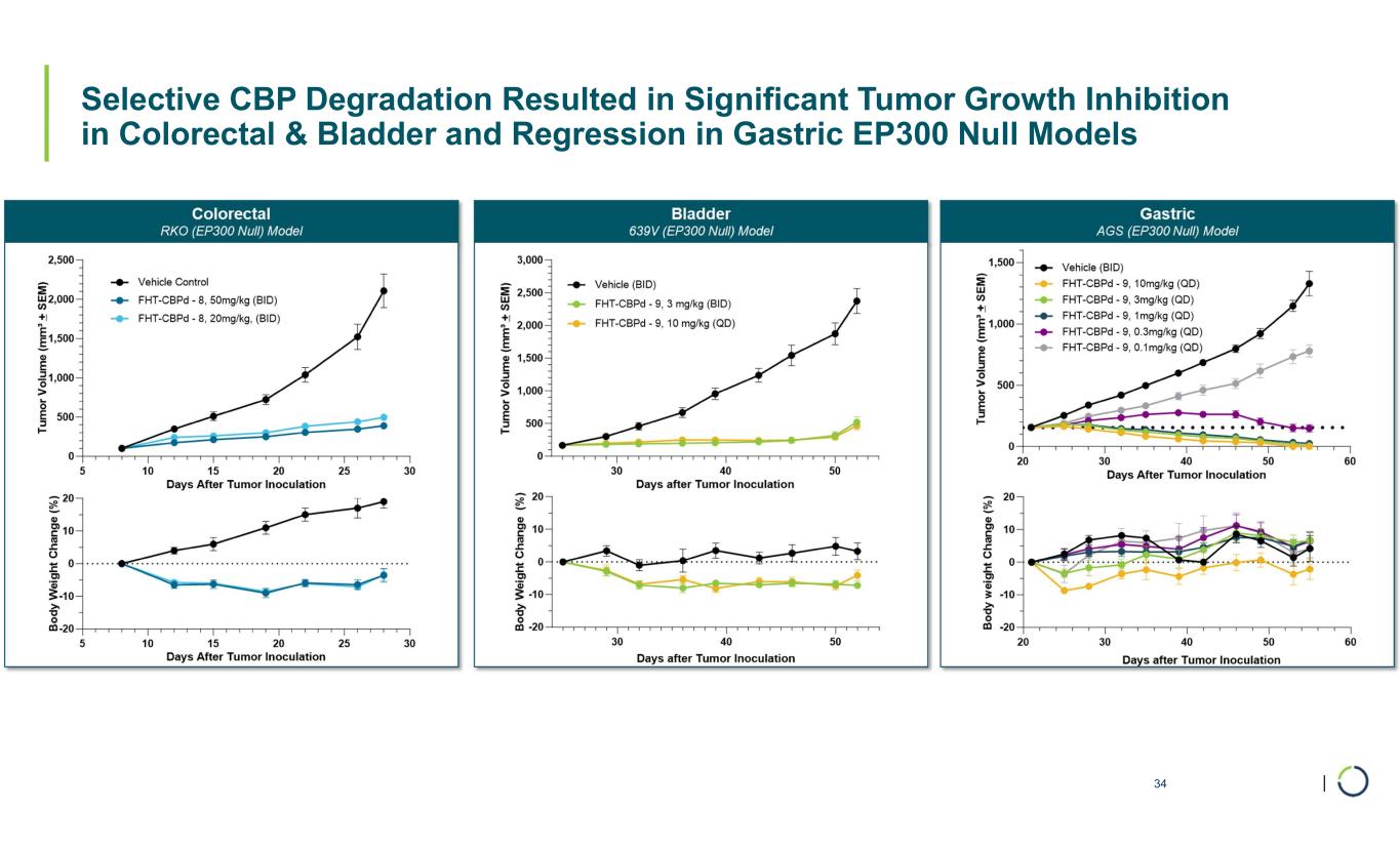 | Selective CBP Degradation Resulted in Significant Tumor Growth Inhibition in Colorectal & Bladder and Regression in Gastric EP300 Null Models 34