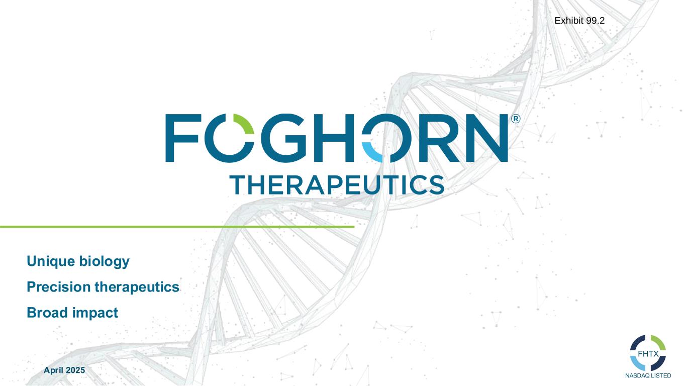 April 2025 Unique biology Precision therapeutics Broad impact NASDAQ LISTED FHTX