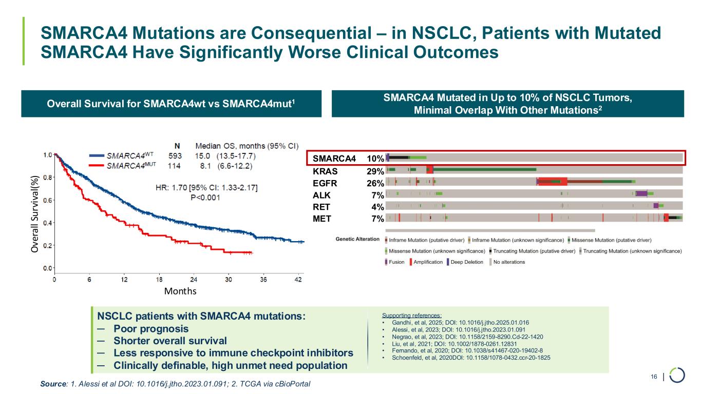 | SMARCA4 is Mutated in Up to 10% of NSCLC; Up to 5% of Solid Tumors 15 SMARCA4 mutated across a broad range of tumors Accounts for ~5% of solid tumors AACR GENIE via cBioPortal