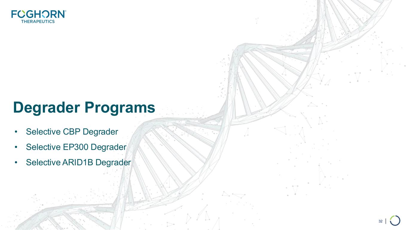 Degrader Programs • Selective CBP Degrader • Selective EP300 Degrader • Selective ARID1B Degrader 32