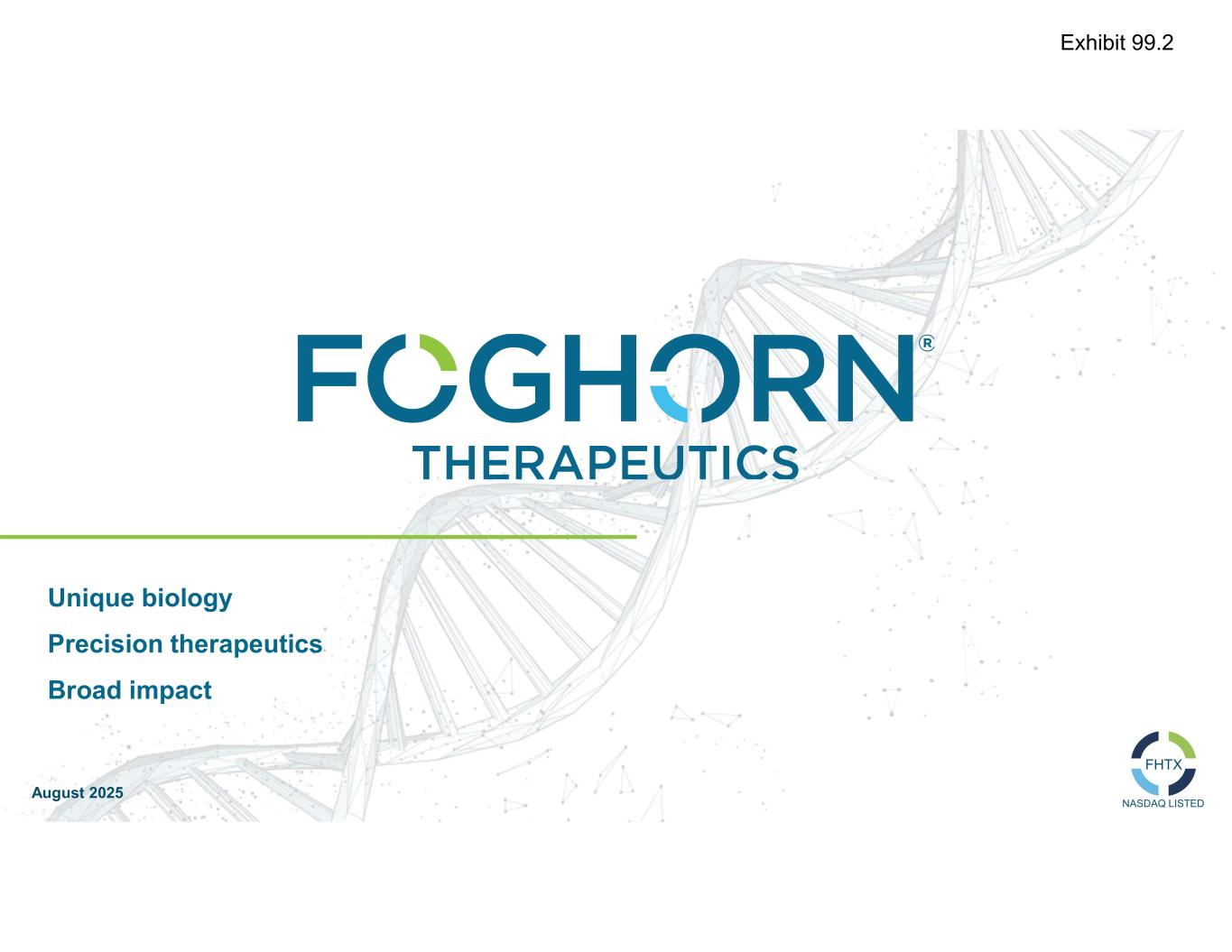 August 2025 Unique biology Precision therapeutics Broad impact NASDAQ LISTED FHTX Exhibit 99.2
