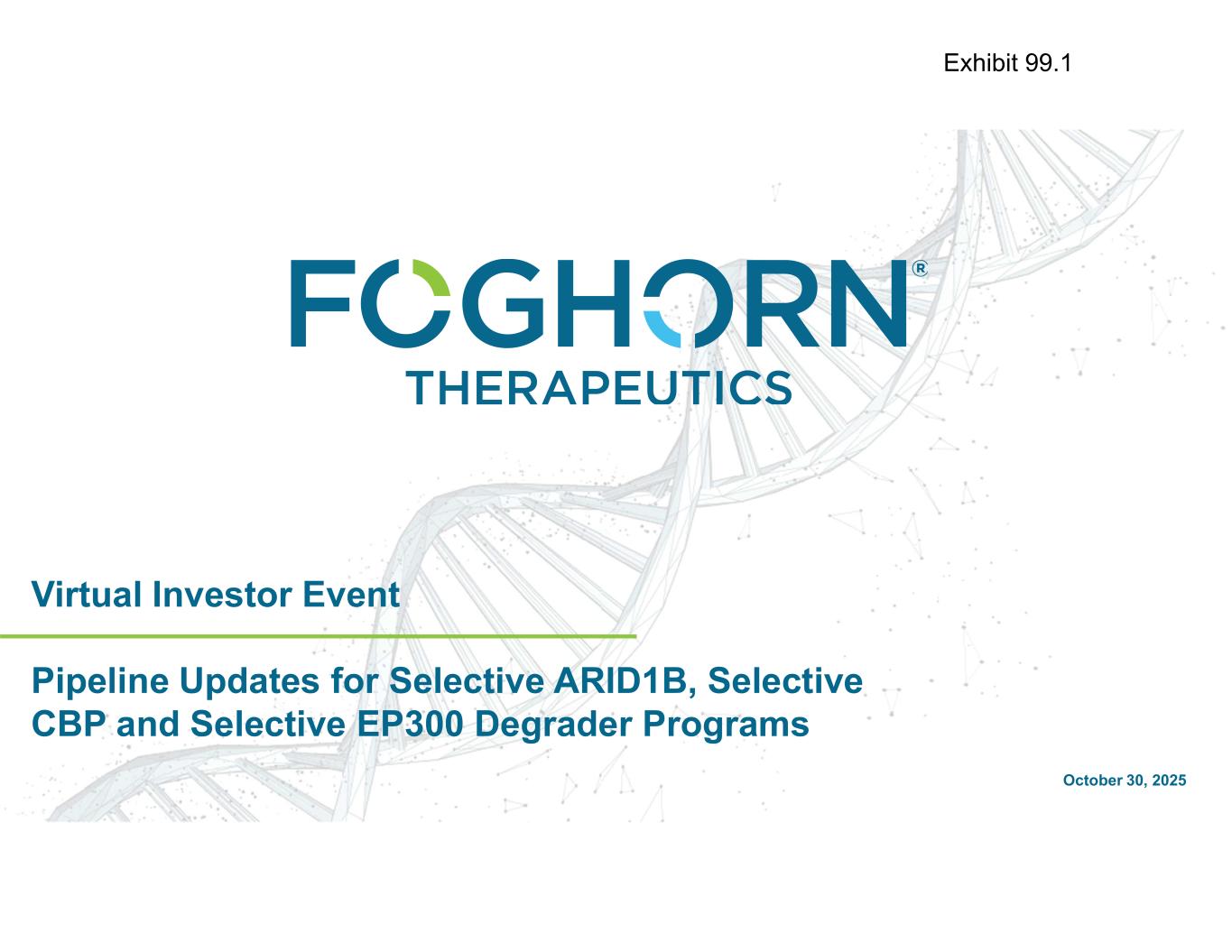 October 30, 2025 Virtual Investor Event Pipeline Updates for Selective ARID1B, Selective CBP and Selective EP300 Degrader Programs Exhibit 99.1