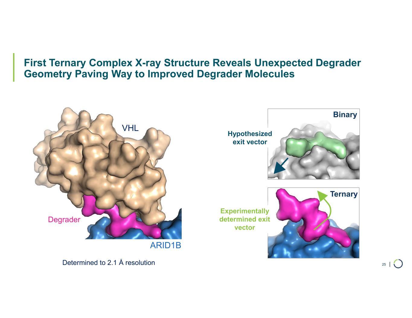 | First Ternary Complex X-ray Structure Reveals Unexpected Degrader Geometry Paving Way to Improved Degrader Molecules 25 Hypothesized exit vector Binary Ternary Determined to 2.1 Å resolution Experimentally determined exit vector VHL Degrader ARID1B