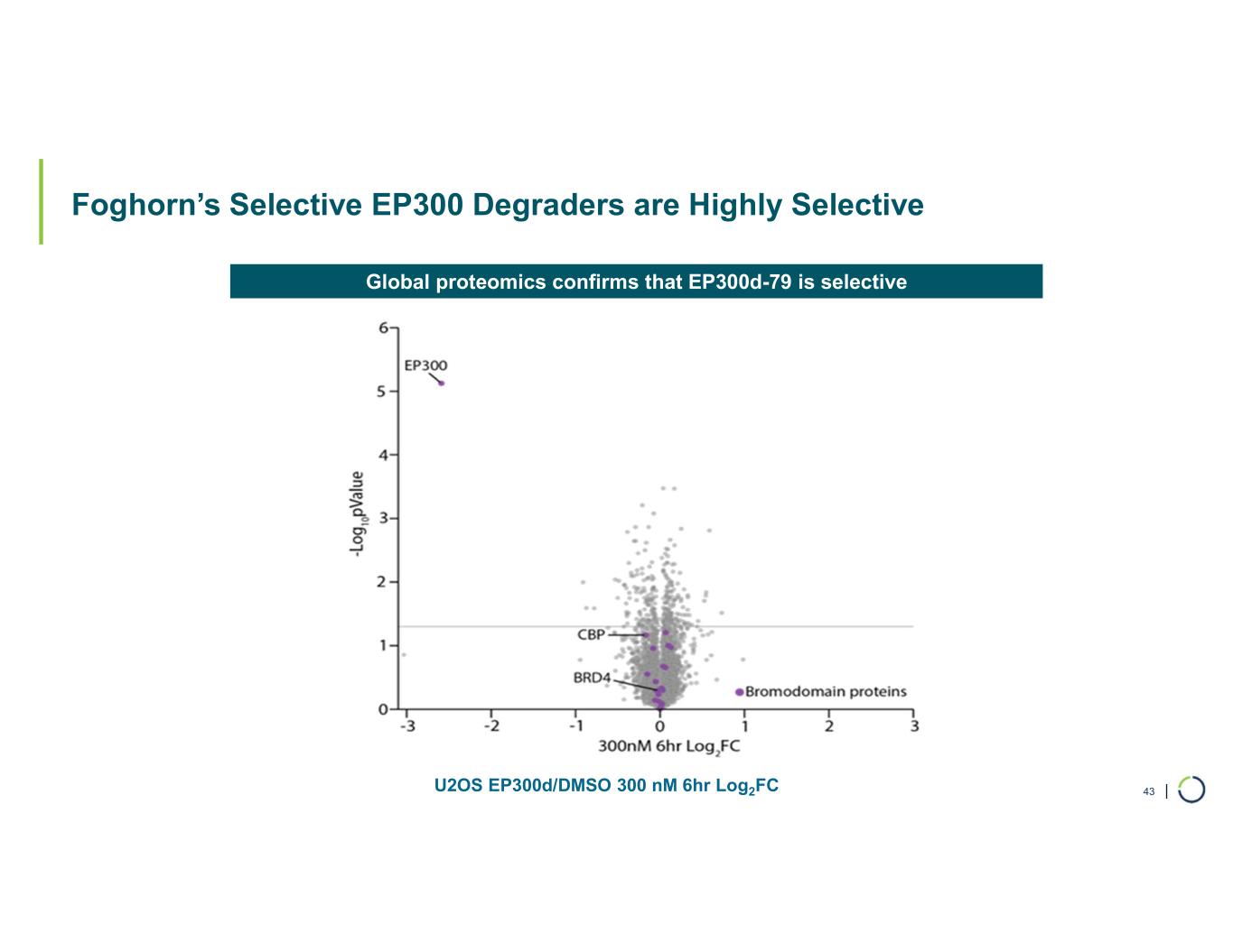| Foghorn’s Selective EP300 Degraders are Highly Selective 43U2OS EP300d/DMSO 300 nM 6hr Log2FC Global proteomics confirms that EP300d-79 is selective