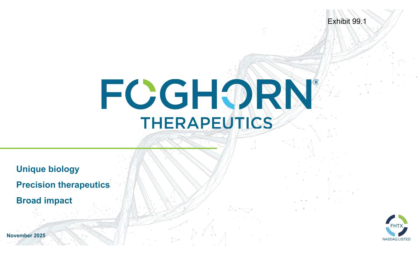 November 2025 Unique biology Precision therapeutics Broad impact NASDAQ LISTED FHTX Exhibit 99.1