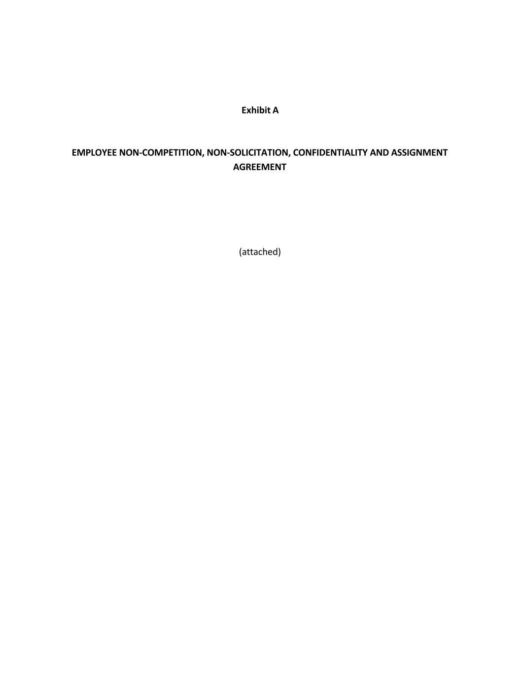 Exhibit A EMPLOYEE NON-COMPETITION, NON-SOLICITATION, CONFIDENTIALITY AND ASSIGNMENT AGREEMENT (attached)