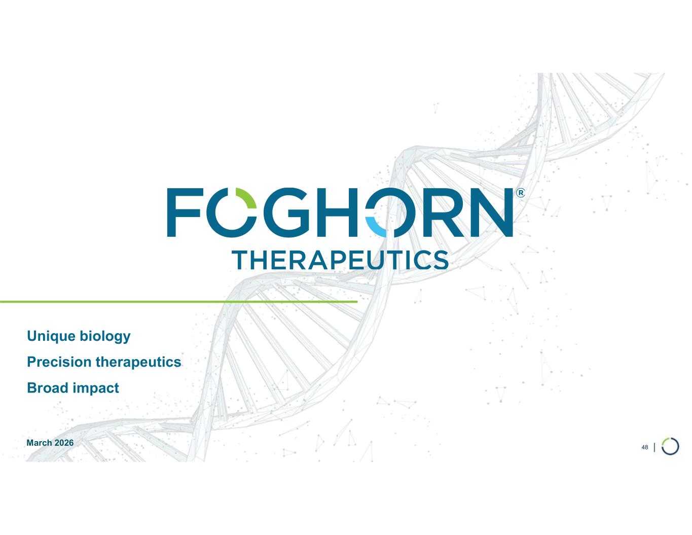Unique biology Precision therapeutics Broad impact 48 March 2026