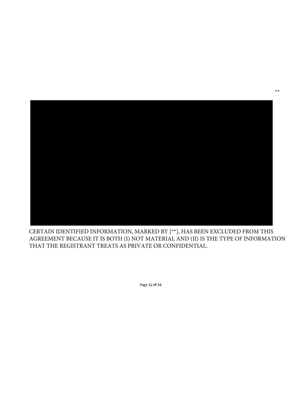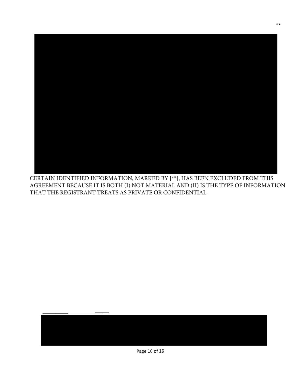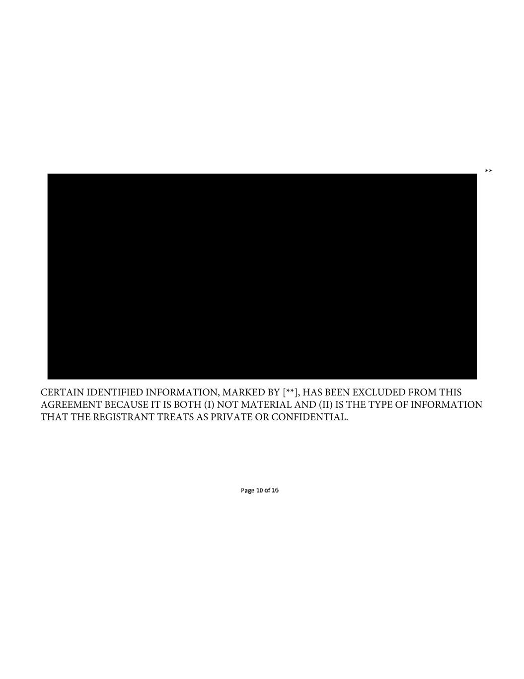 ** CERTAIN IDENTIFIED INFORMATION, MARKED BY [**], HAS BEEN EXCLUDED FROM THIS AGREEMENT BECAUSE IT IS BOTH (I) NOT MATERIAL AND (II) IS THE TYPE OF INFORMATION THAT THE REGISTRANT TREATS AS PRIVATE OR CONFIDENTIAL.