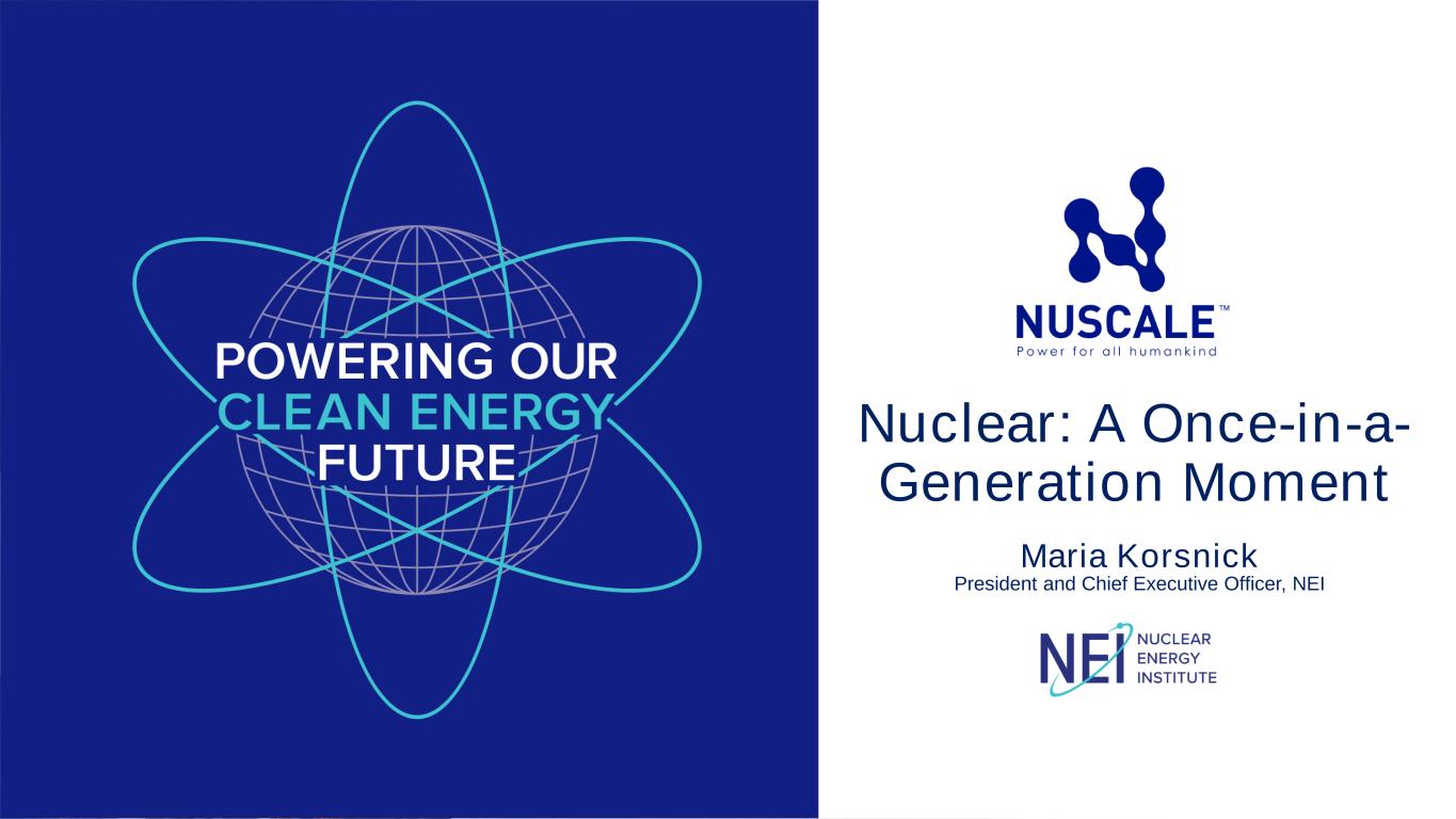 Nuclear: A Once-in-a- Generation Moment Maria Korsnick President and Chief Executive Officer, NEI