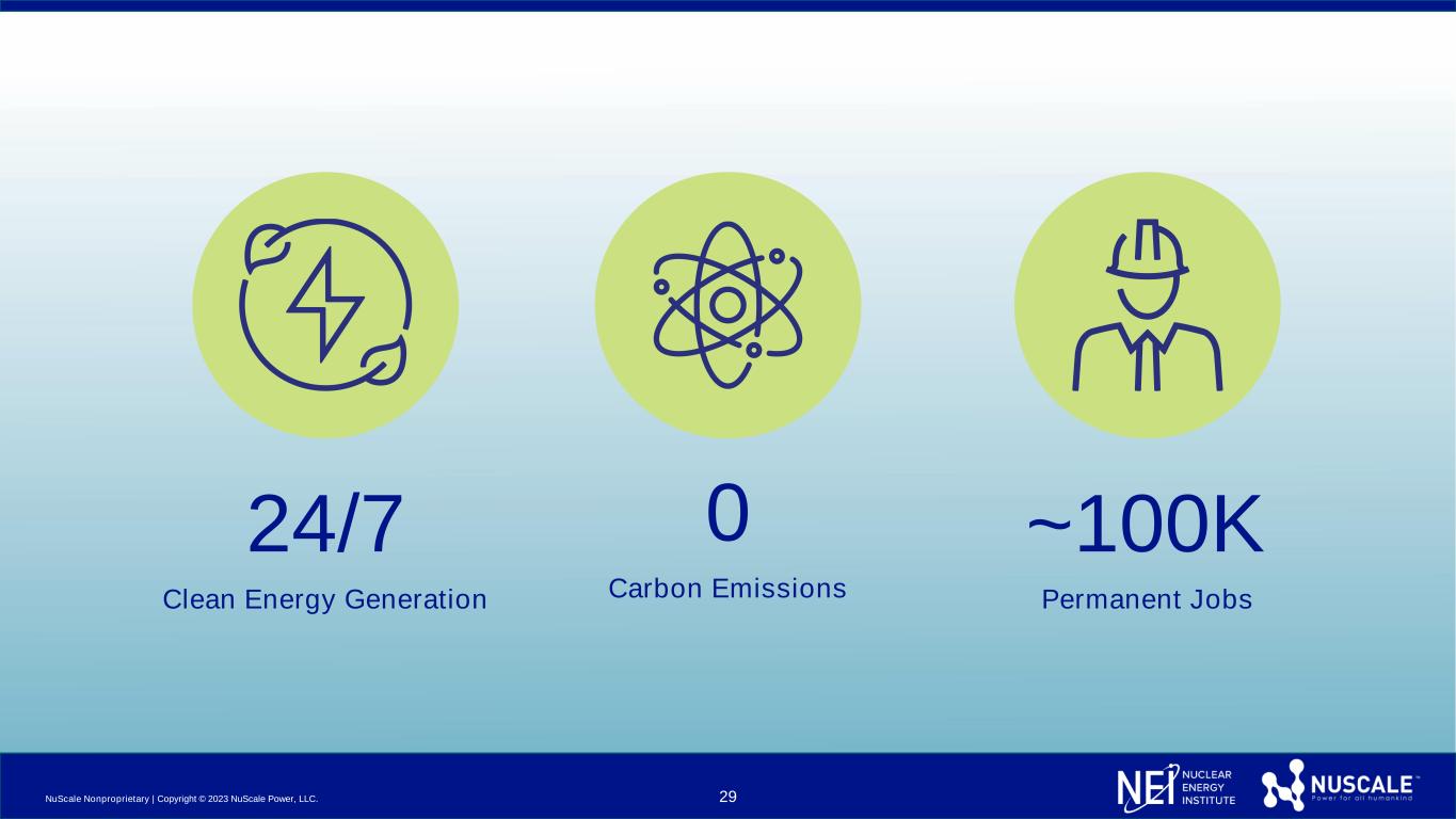 29NuScale Nonproprietary | Copyright © 2023 NuScale Power, LLC. 24/7 Clean Energy Generation 0 Carbon Emissions ~100K Permanent Jobs