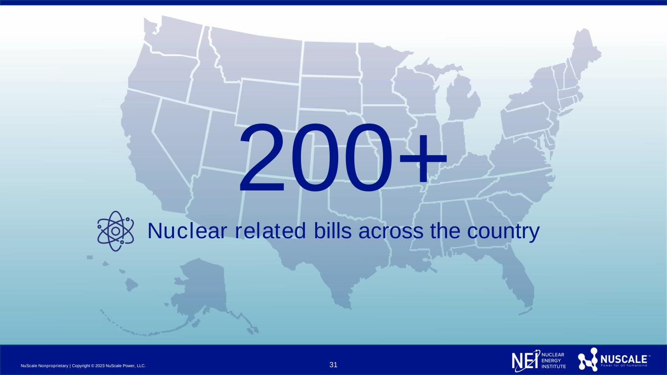 31NuScale Nonproprietary | Copyright © 2023 NuScale Power, LLC. 200+ Nuclear related bills across the country