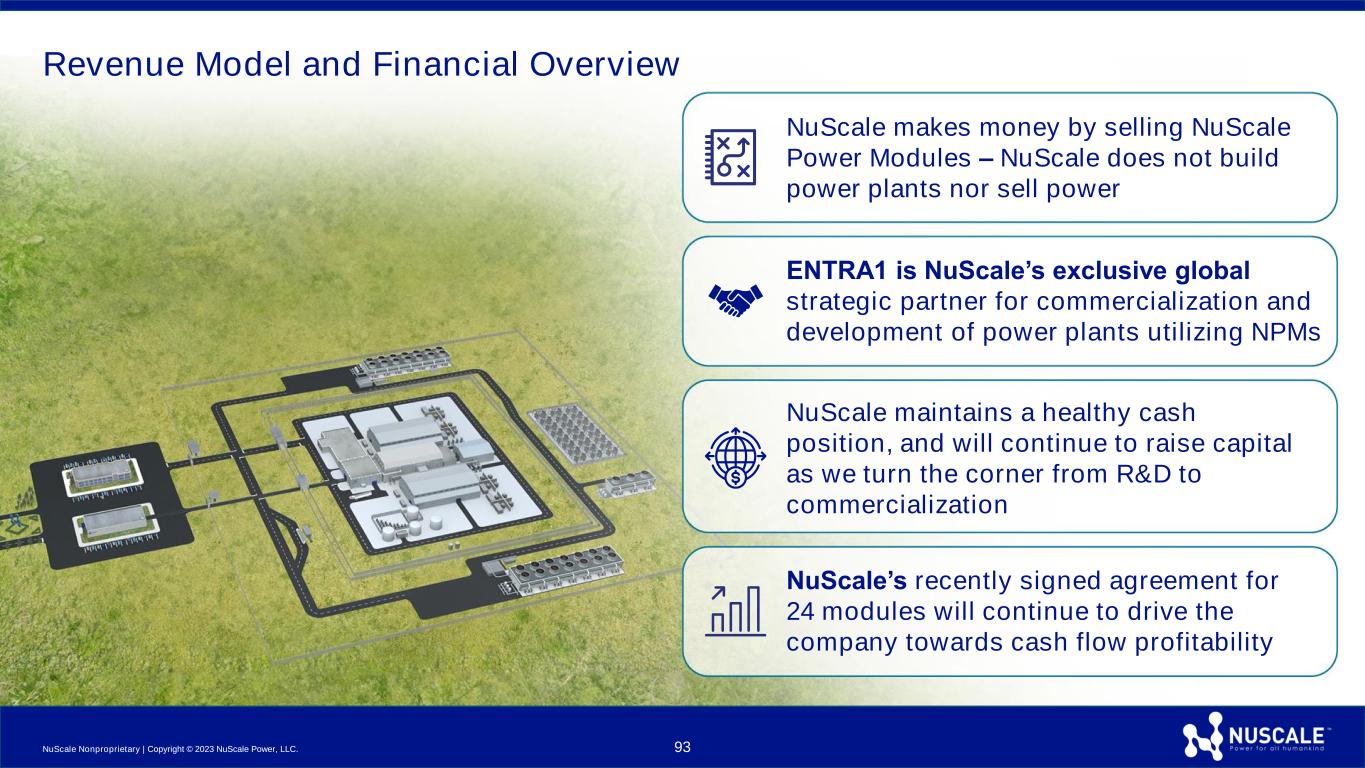 93NuScale Nonproprietary | Copyright © 2023 NuScale Power, LLC. NuScale makes money by selling NuScale Power Modules – NuScale does not build power plants nor sell power NuScale maintains a healthy cash position, and will continue to raise capital as we turn the corner from R&D to commercialization ENTRA1 is NuScale’s exclusive global strategic partner for commercialization and development of power plants utilizing NPMs NuScale’s recently signed agreement for 24 modules will continue to drive the company towards cash flow profitability Revenue Model and Financial Overview