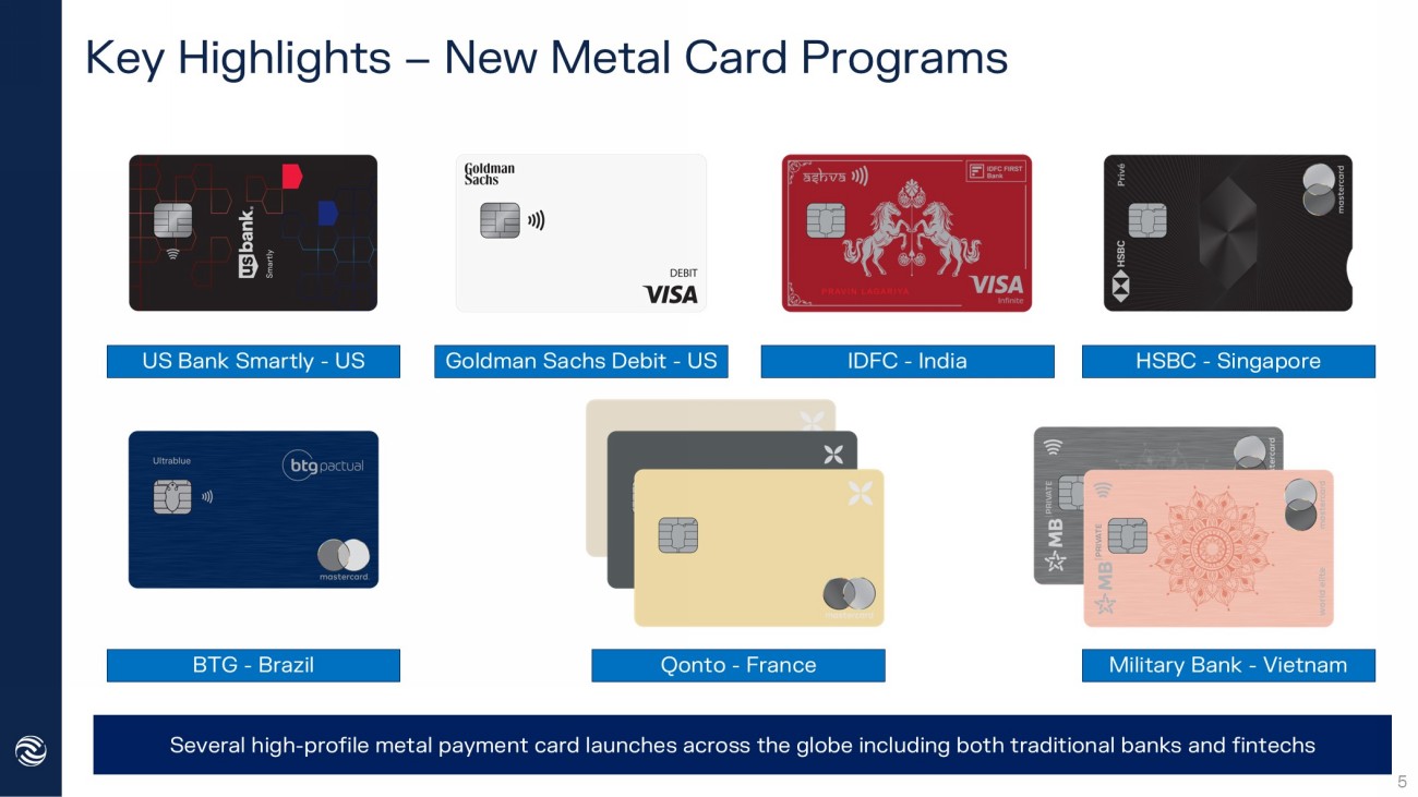 Key Highlights – New Metal Card Programs Goldman Sachs Debit - US Qonto - France Military Bank - Vietnam HSBC - Singapore US Bank Smartly - US BTG - Brazil IDFC - India 5 Several high - profile metal payment card launches across the globe including both traditional banks and fintechs