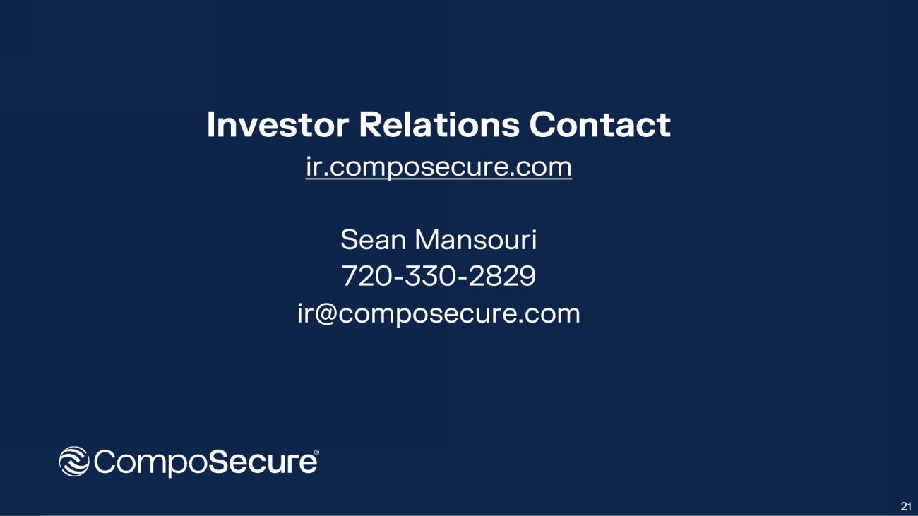 Investor Relations Contact ir.composecure.com Sean Mansouri 720 - 330 - 2829 ir@composecure.com 21