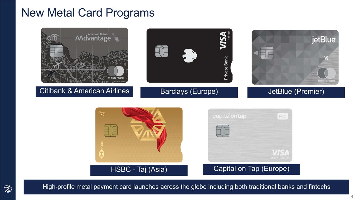Key Highlights – New Metal Card Programs 4 High - profile metal payment card launches across the globe including both traditional banks and fintechs Citibank & American Airlines Barclays (Europe) JetBlue (Premier) HSBC - Taj (Asia) Capital on Tap (Europe)
