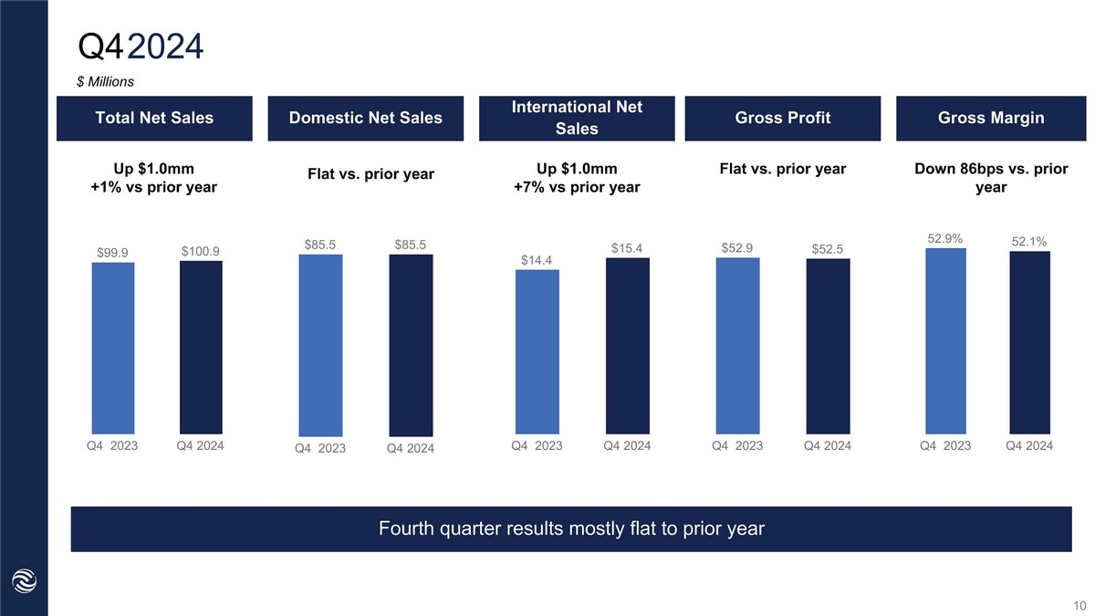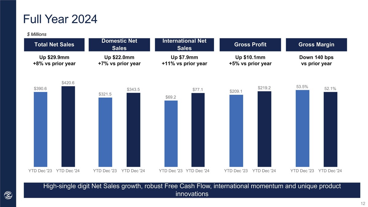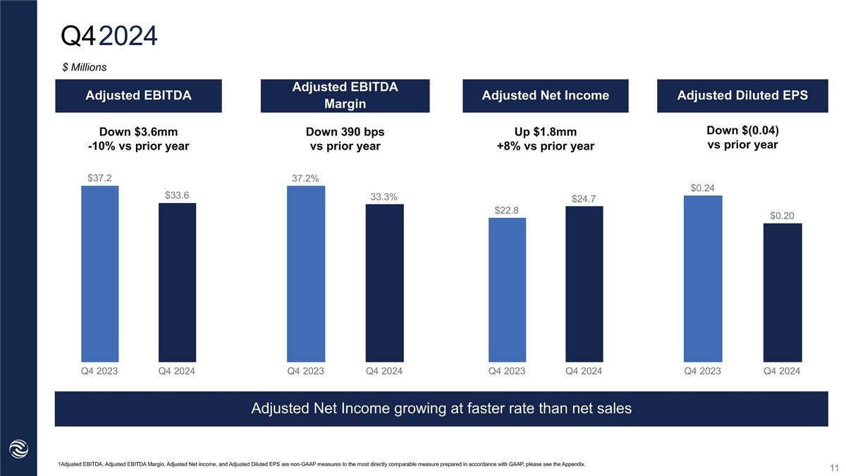 Q4 2024 Q2 YTD ‘22 Total Net Sales Gross Margin International Net Sales Gross Profit Up $1.0mm +1% vs prior year Down 86bps vs. prior year Up $1.0mm +7% vs prior year $ Millions 10 Domestic Net Sales Flat vs. prior year Flat vs. prior year Fourth quarter results mostly flat to prior year