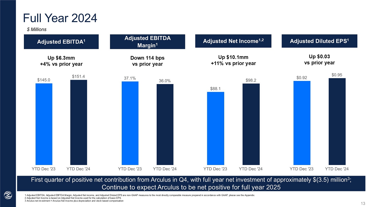 Q2 YTD ‘22 Adjusted EBITDA 1 Adjusted EBITDA Margin 1 Adjusted Net Income 1,2 Adjusted Diluted EPS 1 Up $6.3mm +4% vs prior year Down 114 bps vs prior year Up $10.1mm +11% vs prior year Up $0.03 vs prior year $ Millions 1Adjusted EBITDA, Adjusted EBITDA Margin, Adjusted Net income, and Adjusted Diluted EPS are non - GAAP measures to the most direc tly comparable measure prepared in accordance with GAAP, please see the Appendix. 2 Adjusted Net Income is based on Adjusted Net Income used for the calculation of basic EPS. Full Year 2024 13 First quarter of positive net impact from Arculus in Q4, with full year negative net impact less than $5 million; Continue to expect Arculus to be net positive for full year 2025 (ADD NOTE ANTHONY M)
