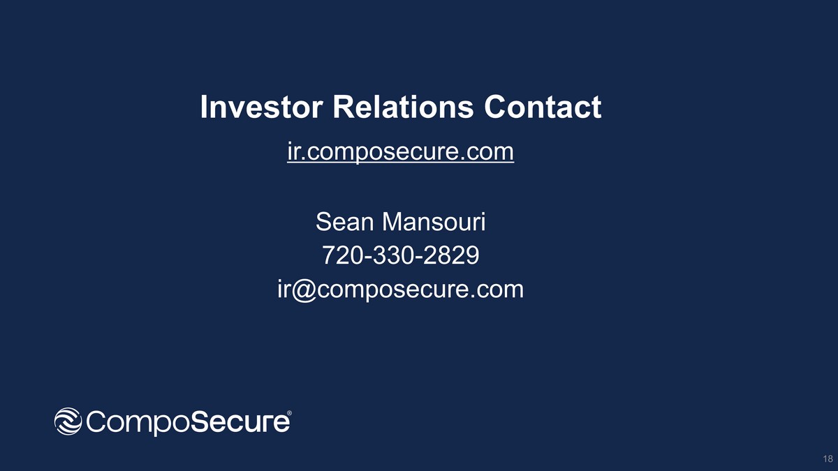 Investor Relations Contact ir.composecure.com Sean Mansouri 720 - 330 - 2829 ir@composecure.com 18