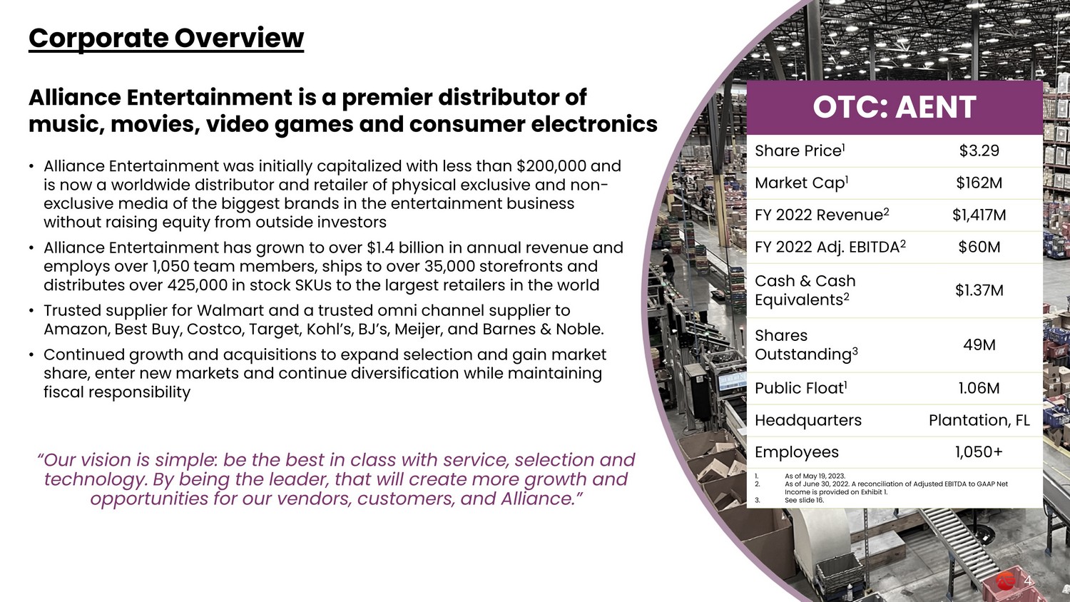 Alliance Entertainment Investor Presentation OTC:AENT May 22, 2023