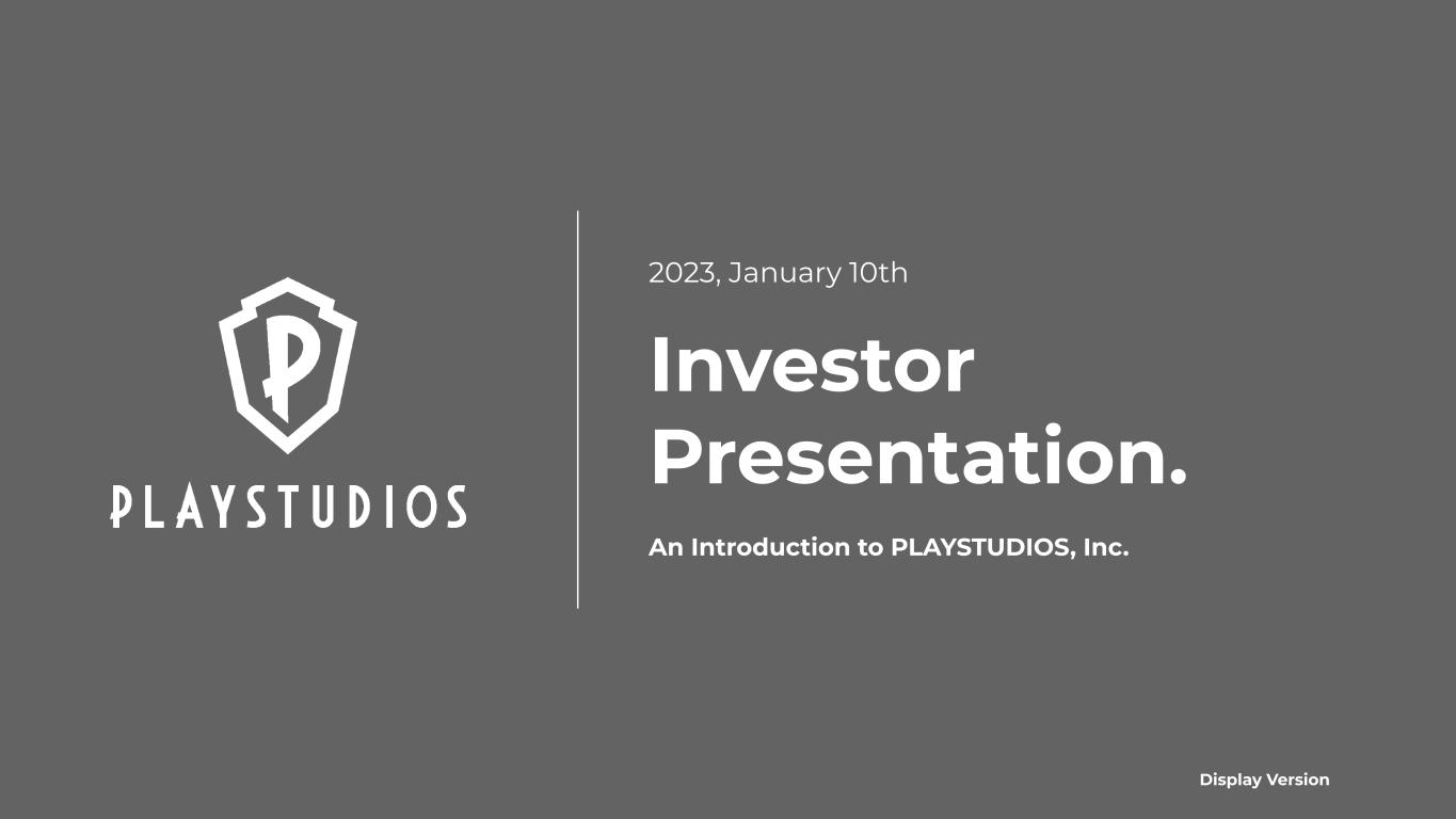 2023, January 10th Investor Presentation. An Introduction to PLAYSTUDIOS, Inc. Display Version