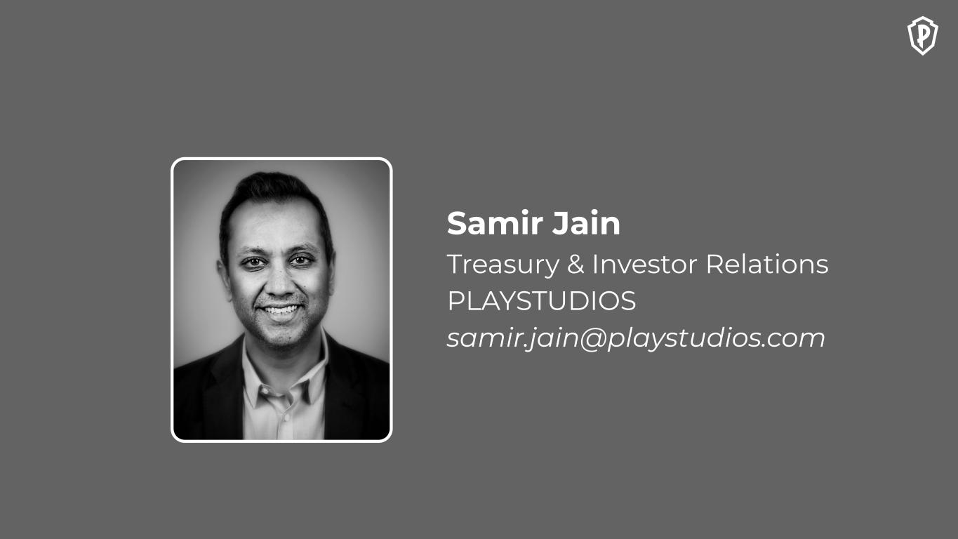Samir Jain Treasury & Investor Relations PLAYSTUDIOS samir.jain@playstudios.com