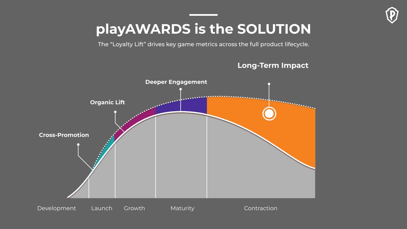Long-Term Impact Cross-Promotion Organic Lift Deeper Engagement Development Launch Growth Maturity Contraction The “Loyalty Lift” drives key game metrics across the full product lifecycle. playAWARDS is the SOLUTION