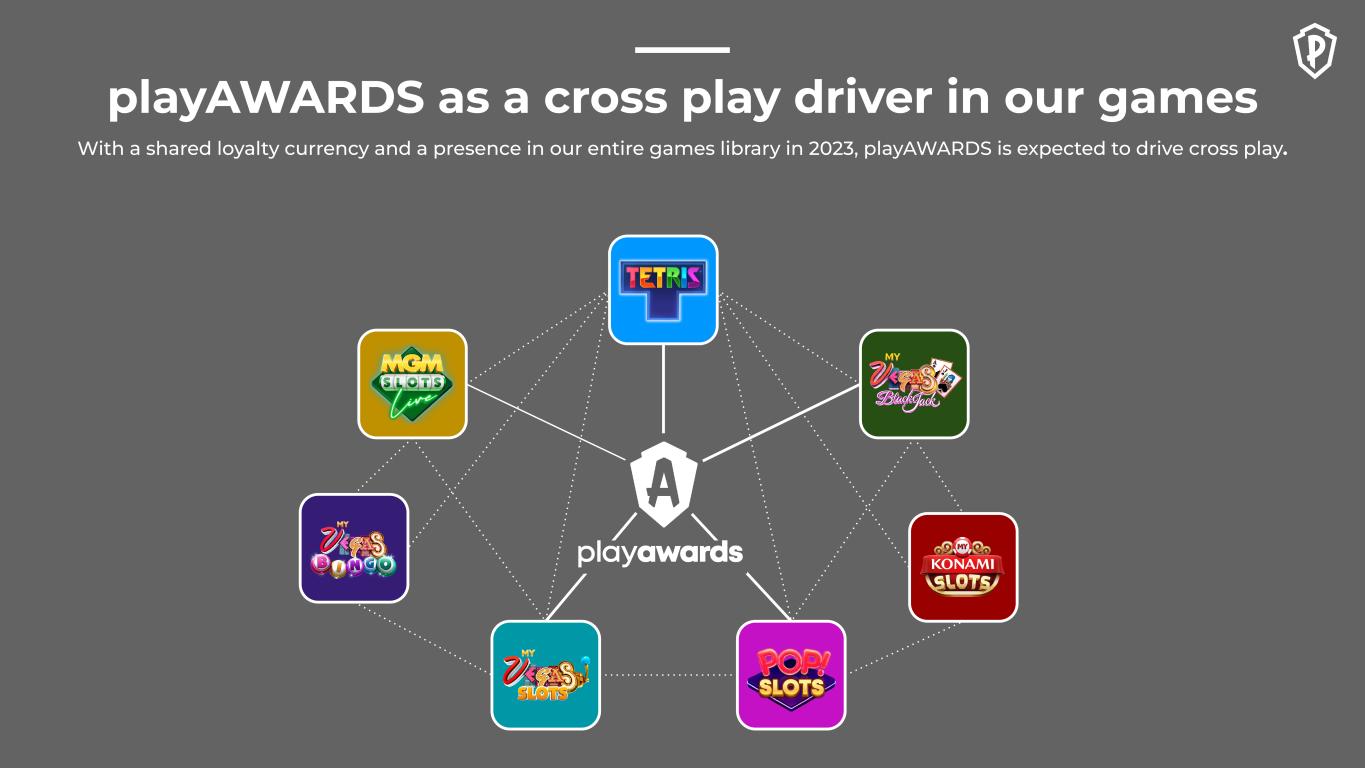 With a shared loyalty currency and a presence in our entire games library in 2023, playAWARDS is expected to drive cross play. playAWARDS as a cross play driver in our games