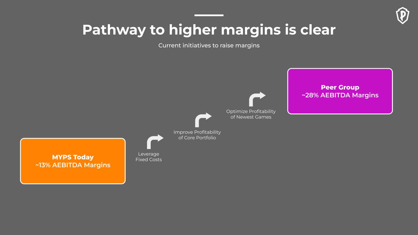 MYPS Today ~13% AEBITDA Margins Peer Group ~28% AEBITDA Margins Leverage Fixed Costs Optimize Profitability of Newest Games Current initiatives to raise margins Pathway to higher margins is clear Improve Profitability of Core Portfolio