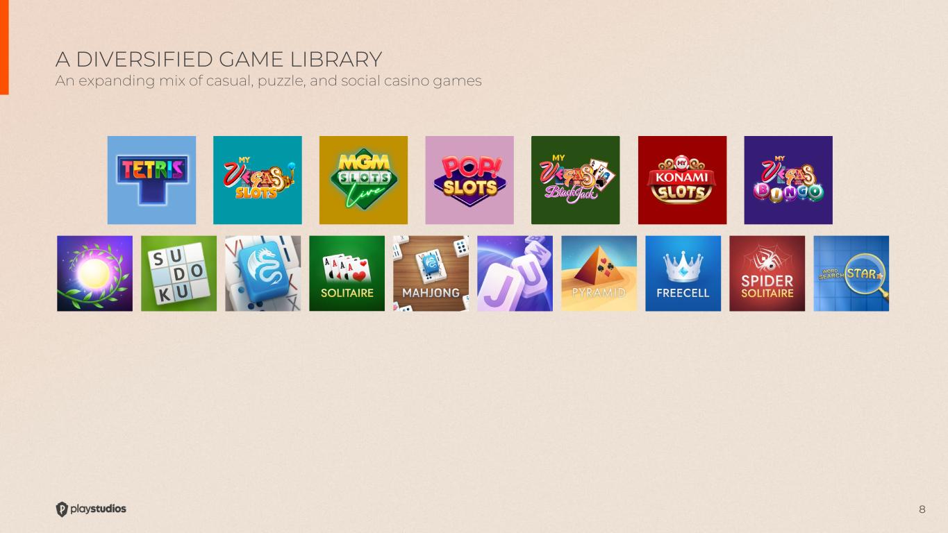 8 A DIVERSIFIED GAME LIBRARY An expanding mix of casual, puzzle, and social casino games
