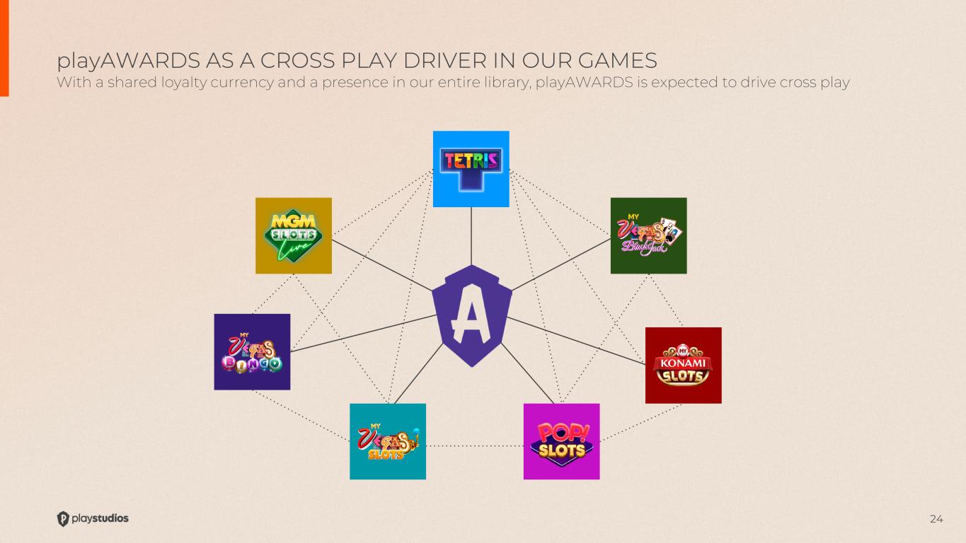 24 playAWARDS AS A CROSS PLAY DRIVER IN OUR GAMES With a shared loyalty currency and a presence in our entire library, playAWARDS is expected to drive cross play