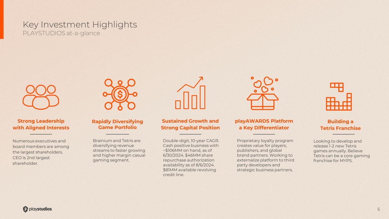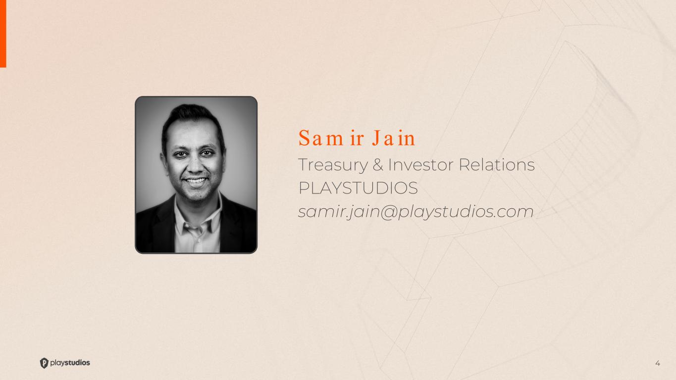 Sa m ir J a in Treasury & Investor Relations PLAYSTUDIOS samir.jain@playstudios.com 4