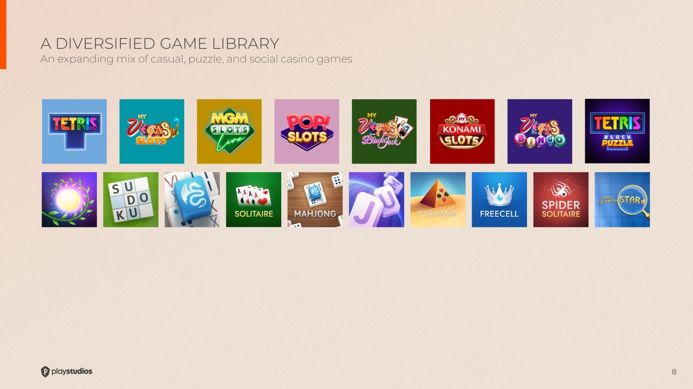 8 A DIVERSIFIED GAME LIBRARY An expanding mix of casual, puzzle, and social casino games