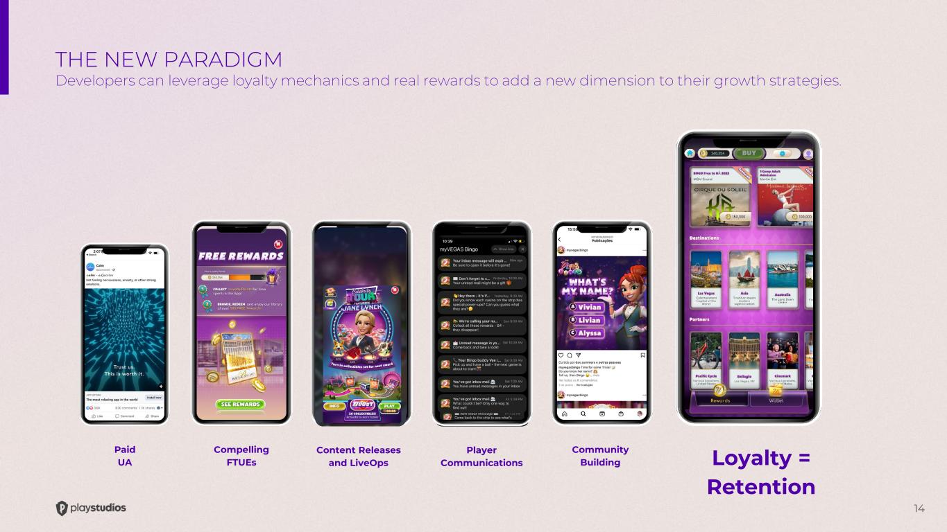 13 Community Building Content Releases and LiveOps Player Communications Compelling FTUEsPaid UA THE OLD PARADIGM Developers have relied on a fixed set of approaches to drive growth.