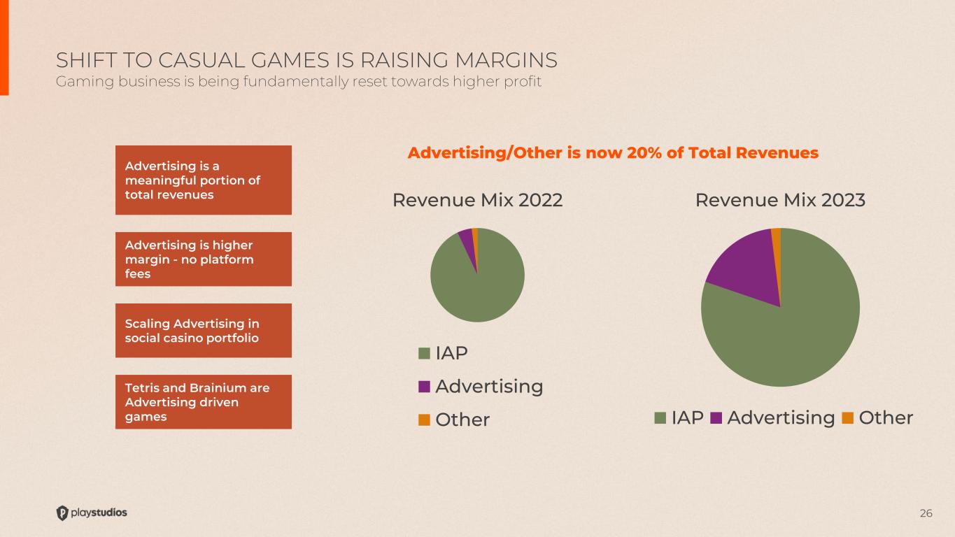 25 MYPS 2023 ~20% AEBITDA Margins Peer Group ~32% AEBITDA Margins* Leverage Fixed Costs Optimize Profitability of Newest Games Improve Profitability of Core Portfolio STRONG MARGINS GAINS IN 2023 CAN CONTINUE Our current initiatives support continued margin growth MYPS 2022 ~13% AEBITDA Margins +700bps GOAL MARGIN OPTIMIZATION FOCUS *Peer group includes Playtika Holding Corp., Huuuge Inc., and DoubleDown Interactive Co Ltd. AEBITDA margins for MYPS do not exclude Software Capitalization.