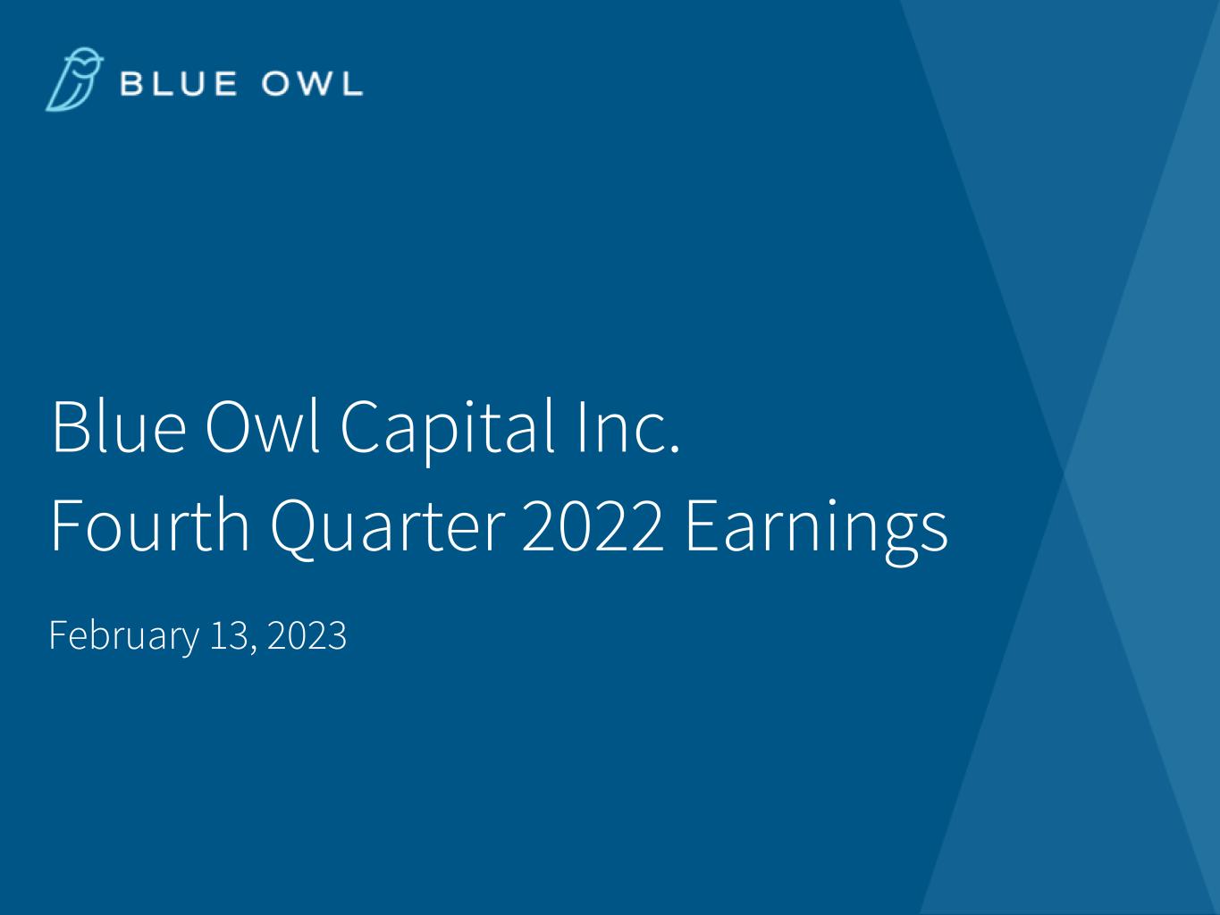 Blue Owl Capital Inc. Fourth Quarter 2022 Earnings February 13, 2023