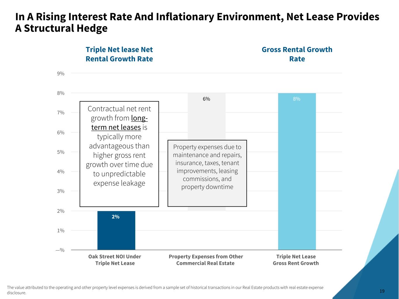 19 2% 2% 2% 6% 8% Oak Street NOI Under Triple Net Lease Property Expenses from Other Commercial Real Estate Triple Net Lease Gross Rent Growth —% 1% 2% 3% 4% 5% 6% 7% 8% 9% In A Rising Interest Rate And Inflationary Environment, Net Lease Provides A Structural Hedge Property expenses due to maintenance and repairs, insurance, taxes, tenant improvements, leasing commissions, and property downtime Contractual net rent growth from long- term net leases is typically more advantageous than higher gross rent growth over time due to unpredictable expense leakage Triple Net lease Net Rental Growth Rate Gross Rental Growth Rate The value attributed to the operating and other property level expenses is derived from a sample set of historical transactions in our Real Estate products with real estate expense disclosure.