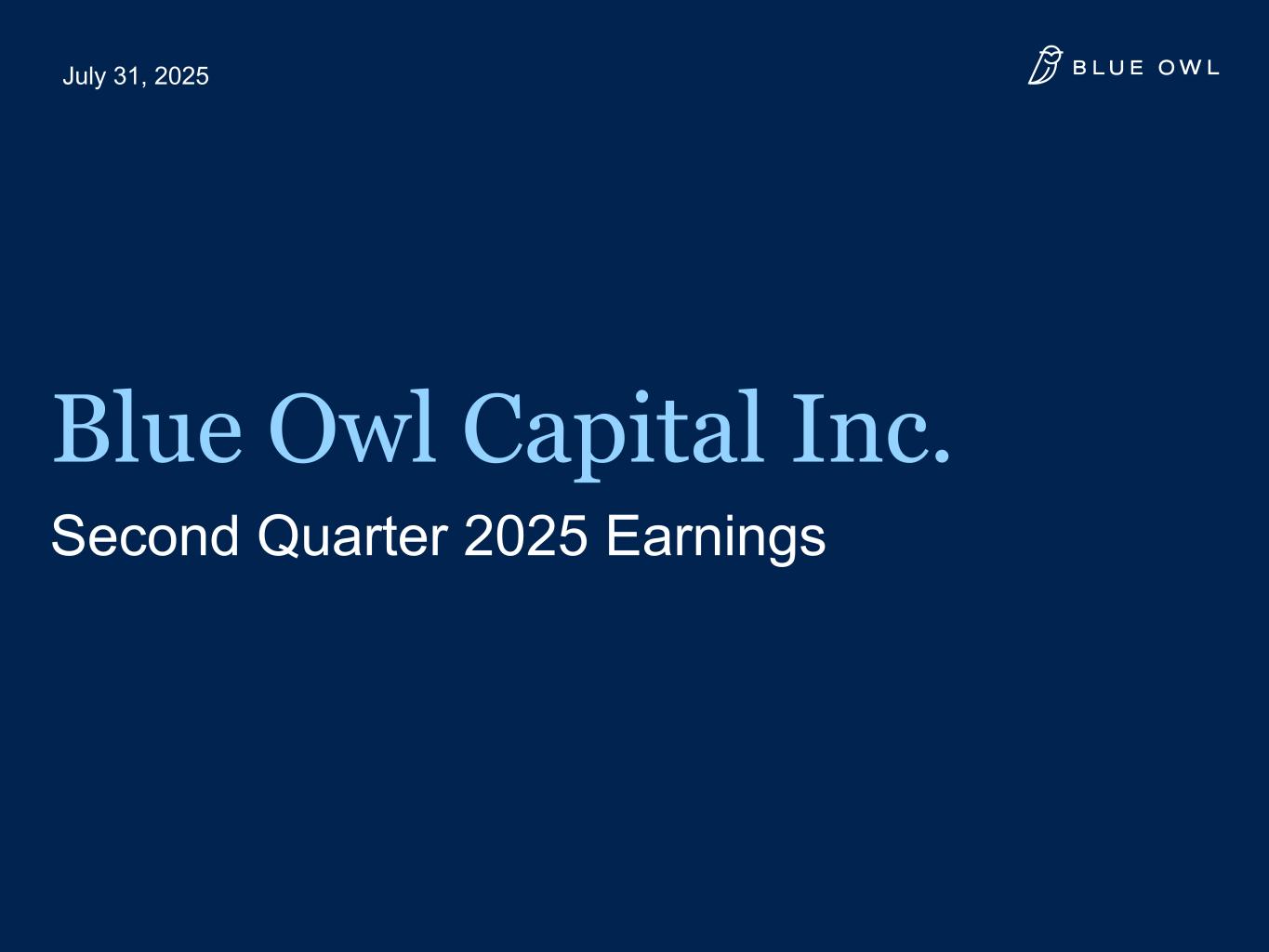 Blue Owl Capital Inc. Second Quarter 2025 Earnings July 31, 2025