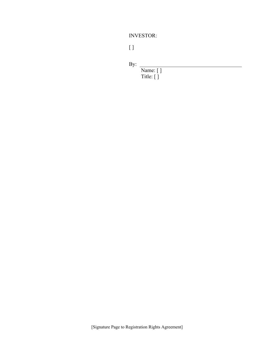[Signature Page to Registration Rights Agreement] INVESTOR: [ ] By: ______________________________________ Name: [ ] Title: [ ]