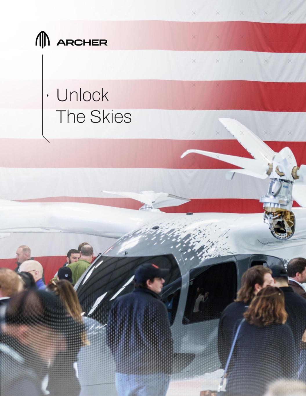 IMAGE IN PROCESS FOR PLACEMENT ONLY 6 The United States has always been at the forefront of technological innovation, and this partnership demonstrates our nation’s commitment to maintain that position. I commend the visionary leadership at DoD which led to this contract and Archer's dedication to pushing the boundaries of aviation technology.” – 4-STAR GEN. STEVE TOWNSEND US ARMY, RETIRED ARCHER GOVERNMENT SERVICES BOARD MEMBER “ *Aircraft imagery to the right is rendered LANDED LARGEST TOTAL CONTRACT VALUE WITH U.S. AIR FORCE OF ANY ANY EVTOL OEM Last week, we announced that we landed the largest total contract value with the U.S. Air Force of any eVTOL OEM, with a total value of up to $142M(1). The new contracts signal the U.S. military's recognition of the transformative potential our innovative eVTOL aircraft brings to our country’s Armed Forces. This new execution phase of the partnership includes the delivery of up to six Midnight aircraft to the Air Force, the sharing of additional flight test data and certification related test reports, pilot training, and the development of maintenance and repair operations. We have been partnering with the DoD since 2021 on a series of projects through the U.S. Air Force’s AFWERX program with the goal of helping the AFWERX Agility Prime program assess the use cases and potential of the vertical flight market and eVTOL technologies for DoD purposes. Now that we have recently completed the manufacturing of our first Midnight aircraft, the DoD recognizes that with its vertical takeoff and landing capabilities, target payload of approximately 1,000 lbs, proprietary electric powertrain system, and low noise profile, our aircraft represents a potential paradigm shift in military aviation and operations. eVTOL aircraft hold the promise of enhancing rapid response, agility, and operational effectiveness across a wide range of mission profiles, from personnel transport and logistics support to rescue operations and more. Our Midnight aircraft is expected to provide a much safer and quieter alternative to helicopters while being more cost-effective for the U.S. military to transport, operate and maintain in the field. The other military branches have the opportunity to leverage these contracts as a platform for additional projects, which could increase the total value of our DoD partnership. (1) Largest "up to" contract awarded by AFWERX to an eVTOL company as of July 27, 2023. The “up to” contract value is subject to certain conditions being met as defined in the contracts.