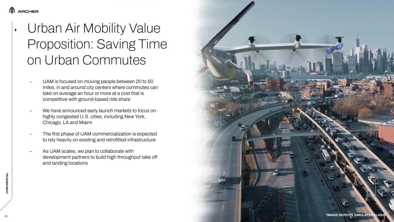 C O N FI D EN TI A L AERIAL RIDESHARING CARGO & LOGISTICS EMERGENCY SERVICES MILITARY (NON-KINETIC) 27 Target Use Cases C O N FI D EN TI A L