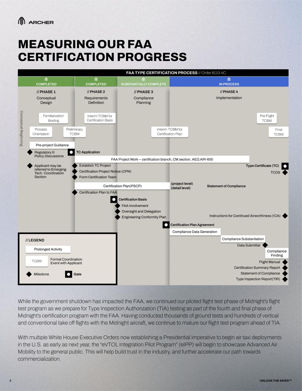 MEASURING OUR FAA CERTIFICATION PROGRESS 8 UNLOCK THE SKIES™ While the government shutdown has impacted the FAA, we continued our piloted flight test phase of Midnight’s flight test program as we prepare for Type Inspection Authorization (TIA) testing as part of the fourth and final phase of Midnight’s certification program with the FAA. Having conducted thousands of ground tests and hundreds of vertical and conventional take off flights with the Midnight aircraft, we continue to mature our flight test program ahead of TIA. With multiple White House Executive Orders now establishing a Presidential imperative to begin air taxi deployments in the U.S. as early as next year, the “eVTOL Integration Pilot Program” (eIPP) will begin to showcase Advanced Air Mobility to the general public. This will help build trust in the industry, and further accelerate our path towards commercialization.